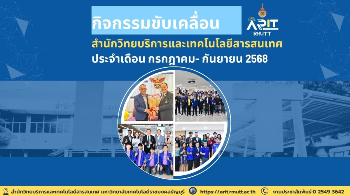สำนักวิทยบริการและเทคโนโลยีสารสนเทศ มหาวิทยาลัยเทคโนโลยีราชมงคลธัญบุรี เดินหน้าขับเคลื่อนภารกิจสำคัญอย่างต่อเนื่อง ตลอดเดือน กรกฎาคม – กันยายน 2568 รวมกว่า 52 กิจกรรม ครอบคลุมการพัฒนาทักษะดิจิทัล การยกระดับมาตรฐานองค์กร ความร่วมมือระดับนานาชาติ การส่งเสริมศักยภาพนักศึกษา ตลอดจนการสร้างสังคมแห่งการเรียนรู้เพื่อความยั่งยืน