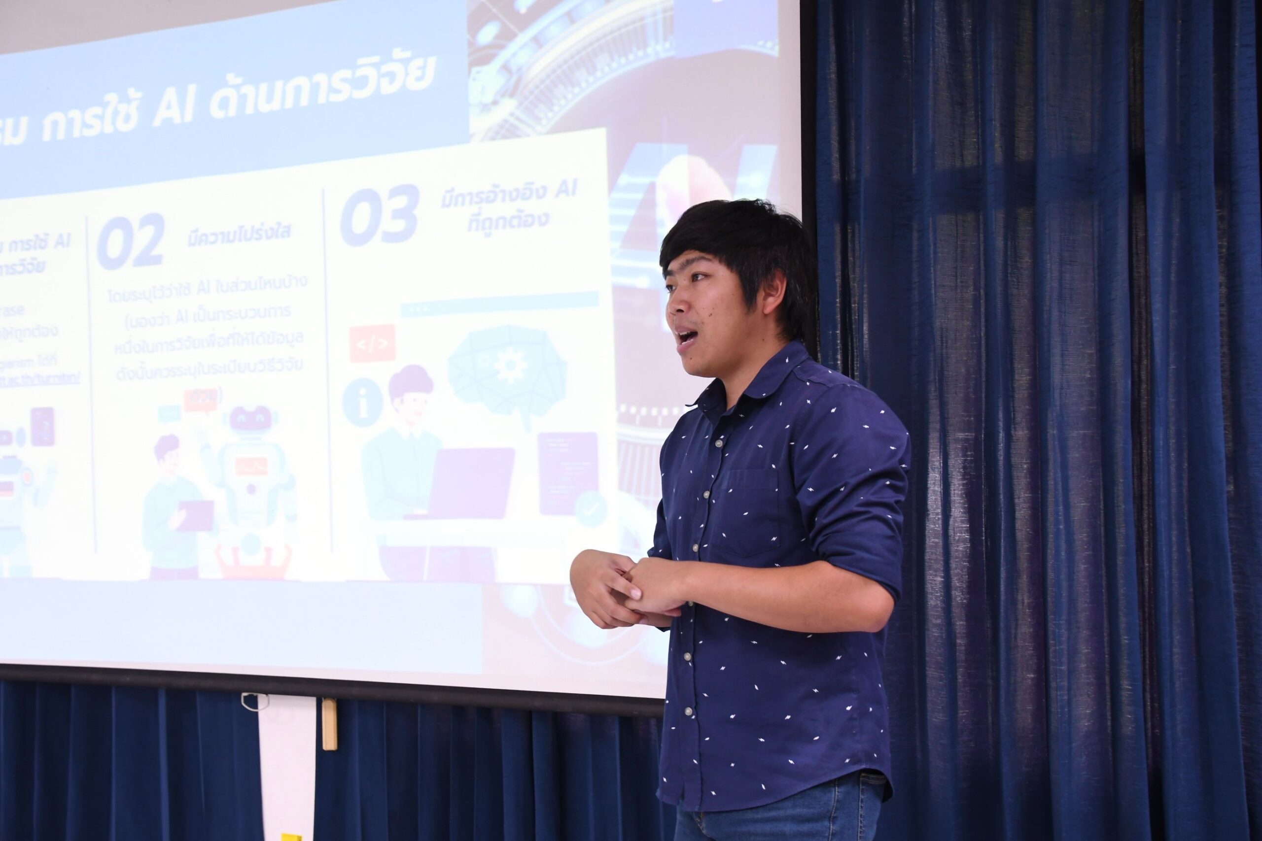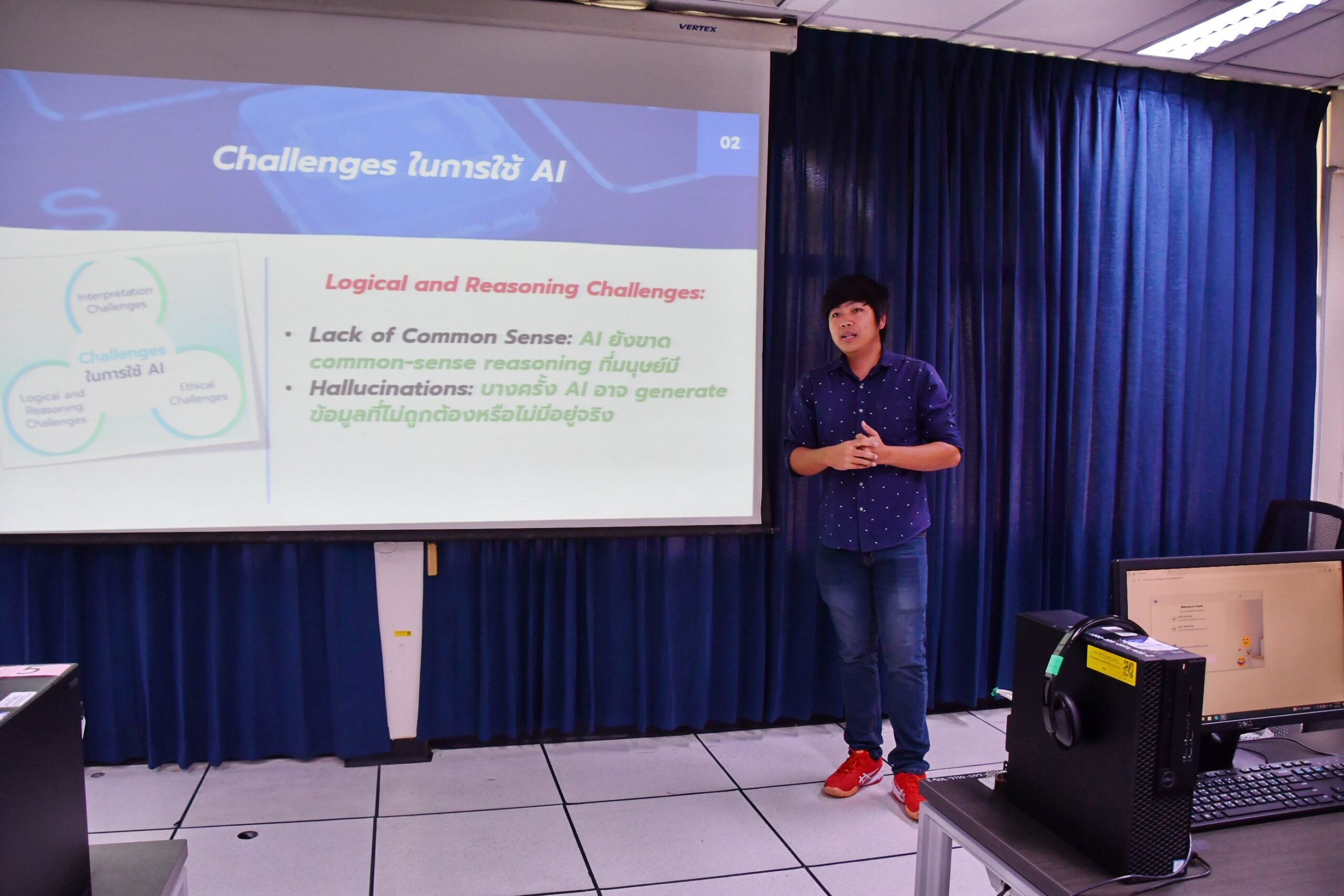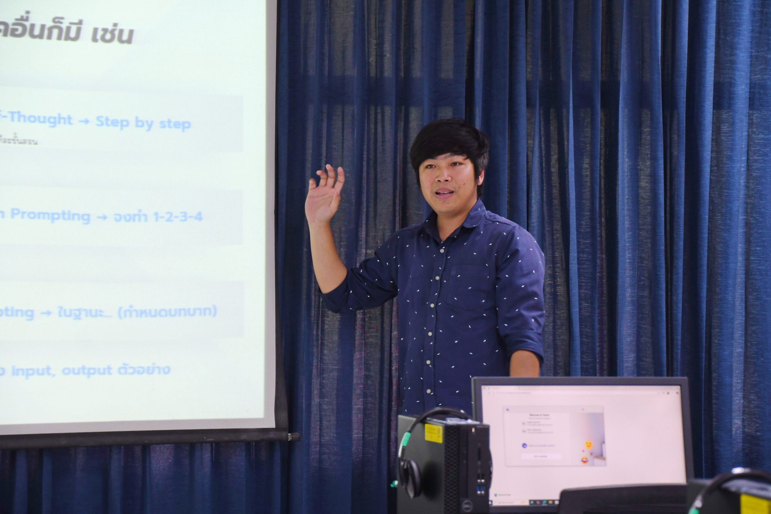 การอบรมครั้งนี้ได้รับเกียรติจาก ดร.อานันท์ ไม้ประดิษฐ์ ผู้ช่วยผู้อำนวยการสำนักวิทยบริการและเทคโนโลยีสารสนเทศ เป็นวิทยากร ถ่ายทอดองค์ความรู้และประสบการณ์การประยุกต์ใช้ Generative AI ในการเรียนการสอน การวิจัย และการสร้างสรรค์นวัตกรรม โดยมีเป้าหมายเพื่อเสริมสร้างทักษะด้าน ปัญญาประดิษฐ์ (AI) ให้แก่นักศึกษาและบุคลากรของมหาวิทยาลัย