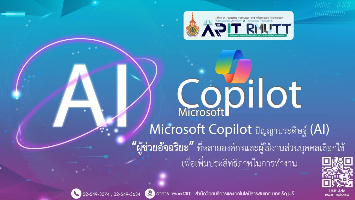 RMUTT Copilot – ผู้ช่วยอัจฉริยะสำหรับชาวราชมงคลธัญบุรี ผลิตภัณฑ์จาก MS365