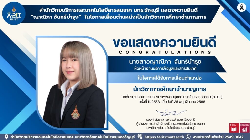 🌏 Facebook Fanpage : สำนักวิทยบริการและเทคโนโลยีสารสนเทศ https://www.facebook.com/AritRMUTT/