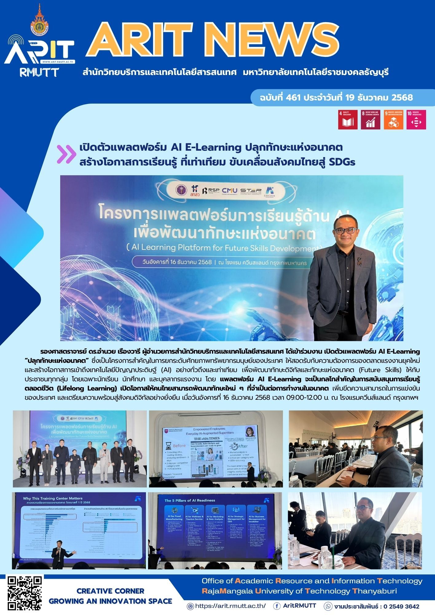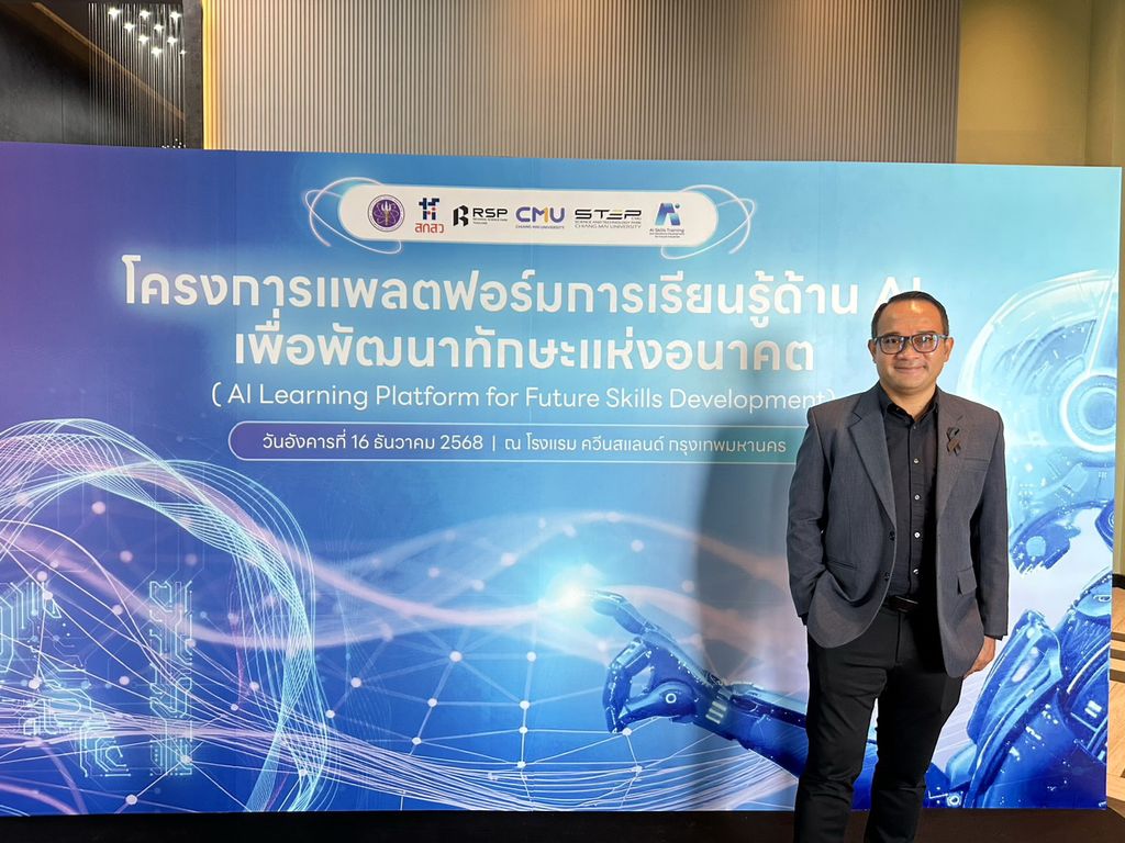 รองศาสตราจารย์ ดร.อำนวย เรืองวารี ผู้อำนวยการสำนักวิทยบริการและเทคโนโลยีสารสนเทศ ได้เข้าร่วมงาน เปิดตัวแพลตฟอร์ม AI E-Learning “ปลุกทักษะแห่งอนาคต” ซึ่งเป็นโครงการสำคัญในการยกระดับศักยภาพทรัพยากรมนุษย์ของประเทศ ให้สอดรับกับความต้องการของตลาดแรงงานยุคใหม่ และสร้างโอกาสการเข้าถึงเทคโนโลยีปัญญาประดิษฐ์ (AI) อย่างทั่วถึงและเท่าเทียม เพื่อพัฒนาทักษะดิจิทัลและทักษะแห่งอนาคต (Future Skills) ให้กับประชาชนทุกกลุ่ม โดยเฉพาะนักเรียน นักศึกษา และบุคลากรแรงงาน โดย แพลตฟอร์ม AI E-Learning จะเป็นกลไกสำคัญในการสนับสนุนการเรียนรู้ตลอดชีวิต (Lifelong Learning) เปิดโอกาสให้คนไทยสามารถพัฒนาทักษะใหม่ ๆ ที่จำเป็นต่อการทำงานในอนาคต เพิ่มขีดความสามารถในการแข่งขันของประเทศ และเตรียมความพร้อมสู่สังคมดิจิทัลอย่างยั่งยืน เมื่อวันอังคารที่ 16 ธันวาคม 2568 เวลา 09.00-12.00 น. ณ โรงแรมควีนส์แลนด์ กรุงเทพฯ