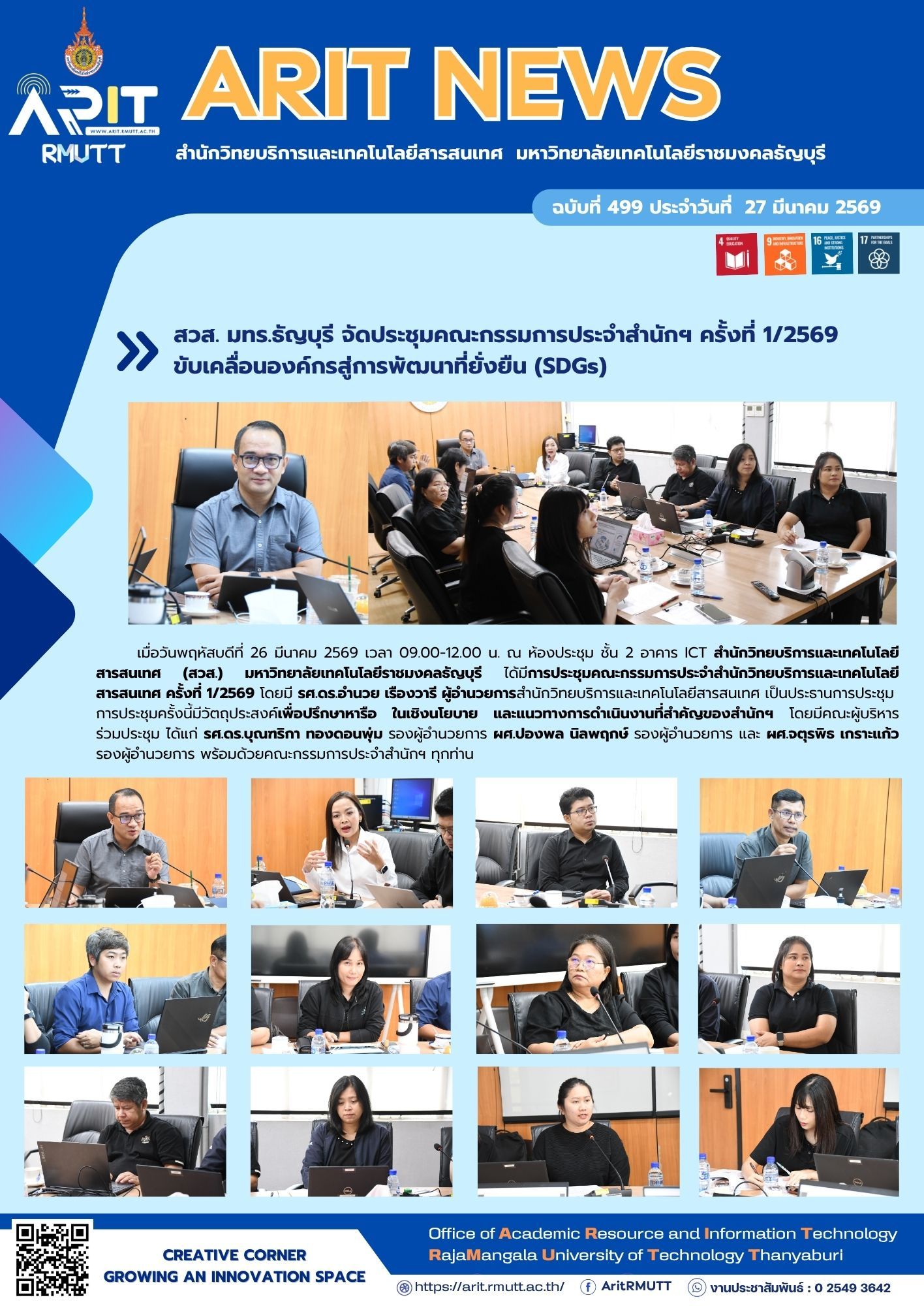 - SDG 16: สันติภาพ ความยุติธรรม และสถาบันที่เข้มแข็ง (Peace, Justice and Strong Institutions)การประชุมเชิงนโยบายและการบริหารจัดการองค์กรอย่างมีประสิทธิภาพ