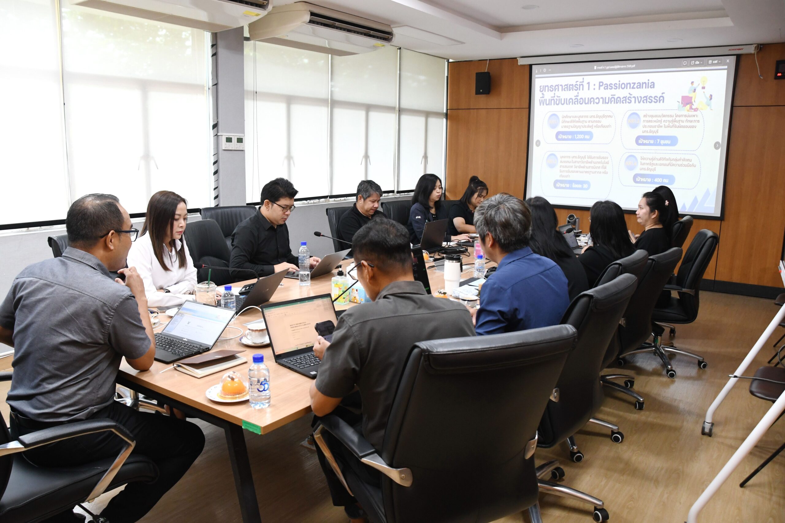 การประชุมครั้งนี้มีวัตถุประสงค์เพื่อปรึกษาหารือ ในเชิงนโยบาย และแนวทางการดำเนินงานที่สำคัญของสำนักฯ โดยมีคณะผู้บริหารร่วมประชุม ได้แก่ รศ.ดร.บุณฑริกา ทองดอนพุ่ม รองผู้อำนวยการ ผศ.ปองพล นิลพฤกษ์ รองผู้อำนวยการ และ ผศ.จตุรพิธ เกราะแก้ว รองผู้อำนวยการ พร้อมด้วยคณะกรรมการประจำสำนักฯ ทุกท่าน