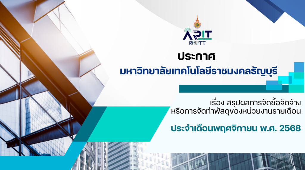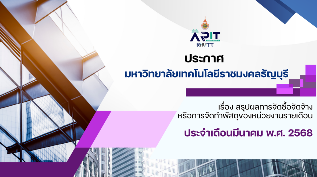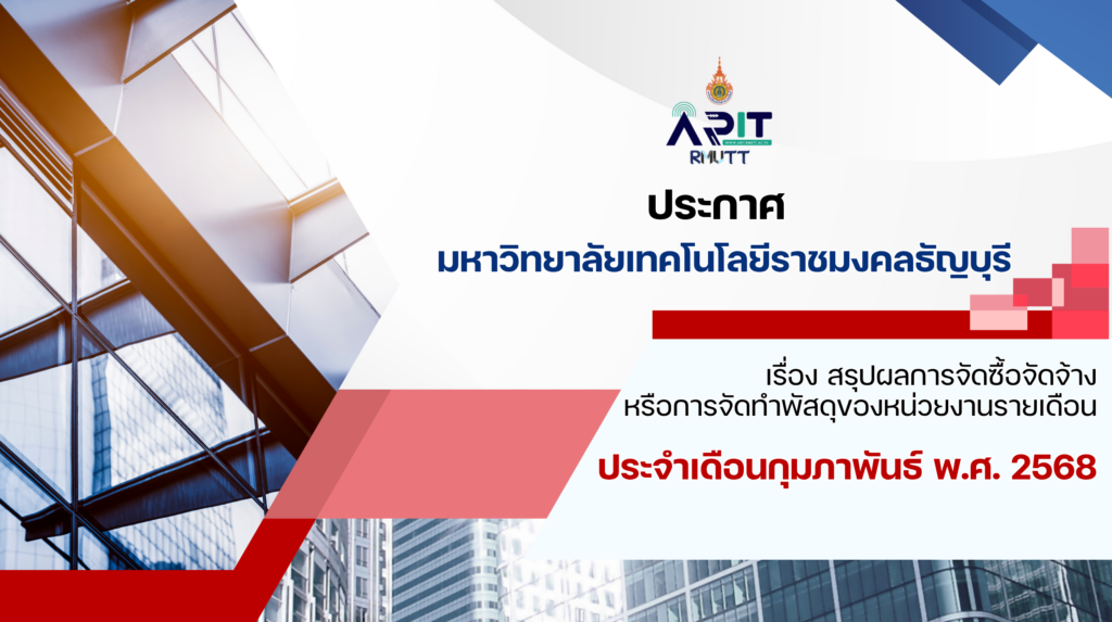 31/03/2026Published by สุภาภรณ์ พงษ์พิทักษ์ at 31/03/2026ประกาศ เรื่อง สรุปผลการจัดซื้อจัดจ้างหรือการจัดทำพัสดุของหน่วยงานรายเดือน ประจำเดือนมีนาคม พ.ศ. 2568ประกาศมหาวิทยาลัยเทคโนโลยี […]