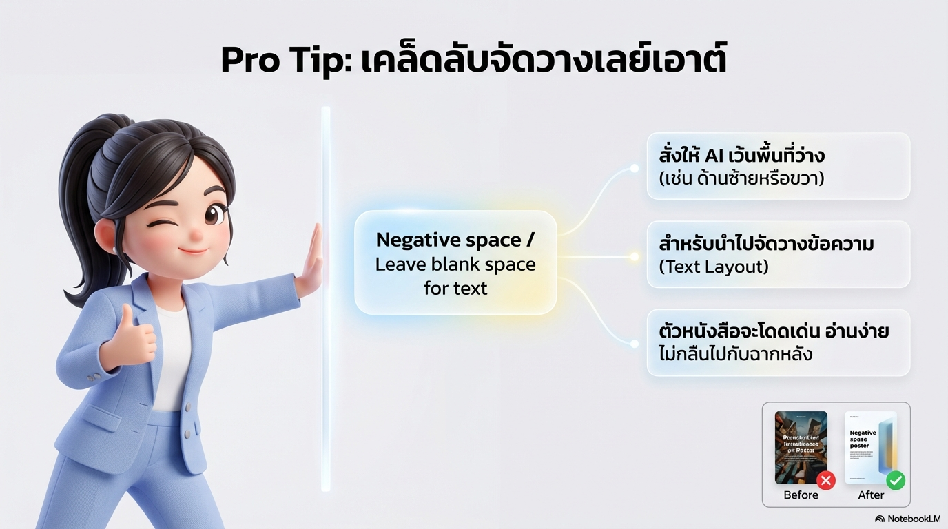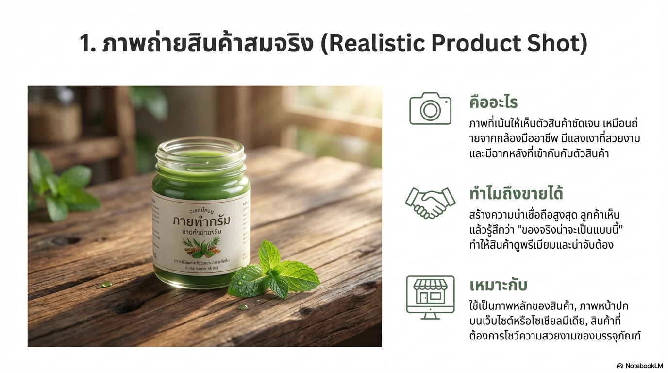 - การออกแบบ (Visual): ซ้ายข้อความ ขวาภาพ, พื้นหลังสีขาว เทาอ่อน หรือ Navy, ใช้พื้นที่ว่าง (White Space) เยอะ, ตัวอักษรใหญ่ อ่านง่าย, เน้นภาพถ่ายการทำงานจริง (Real-life office) ผสมไอคอนเส้นบาง (Line art)