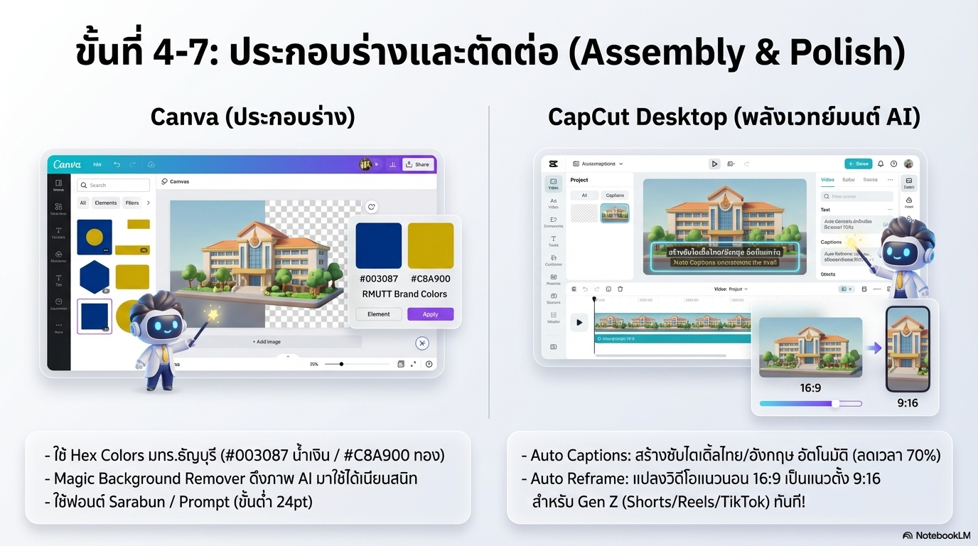 - เหมาะกับ: คู่มือการปฏิบัติงาน / การสอนเครื่องมือที่มี Step-by-step สำหรับอาจารย์มหาวิทยาลัย