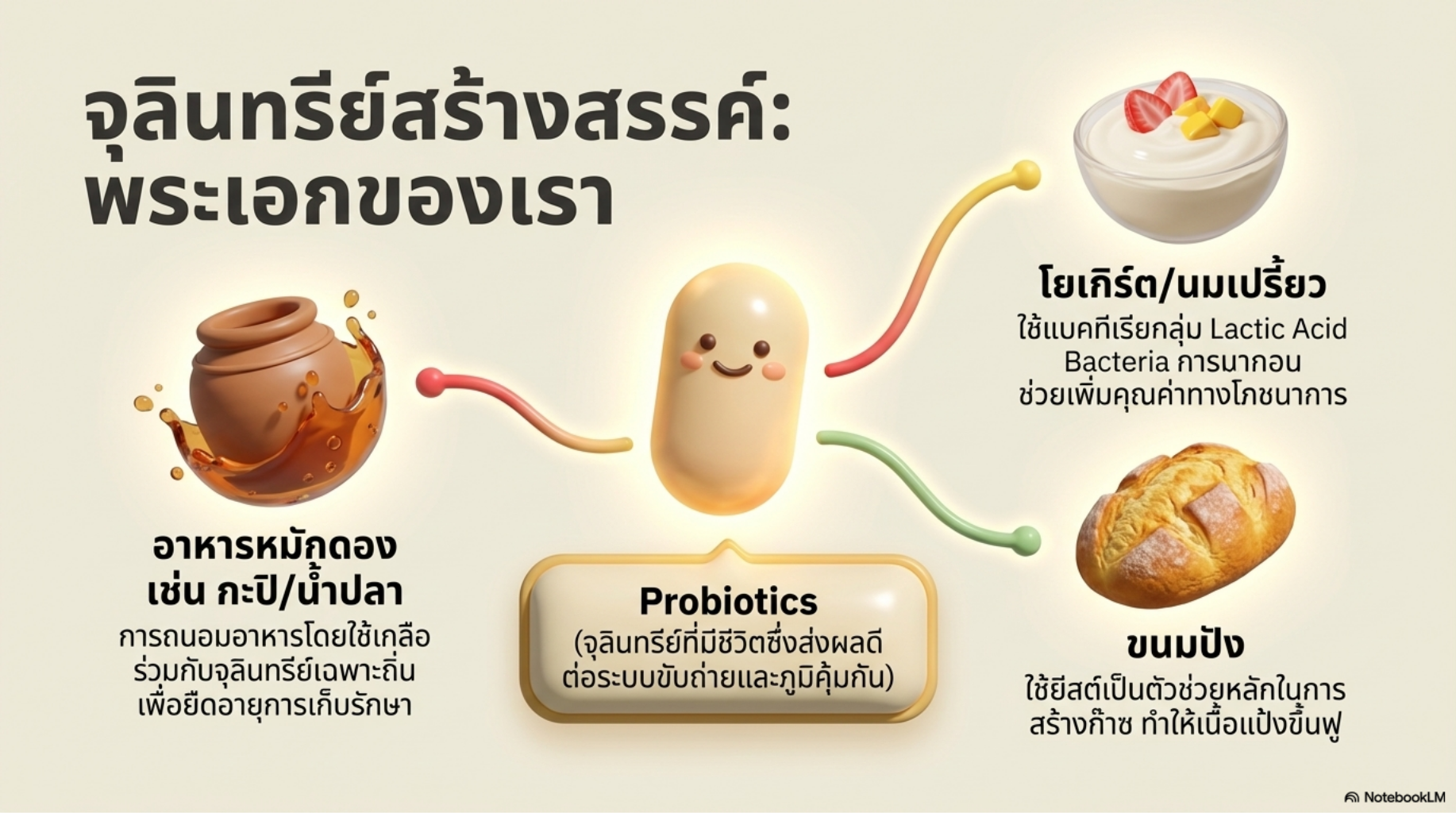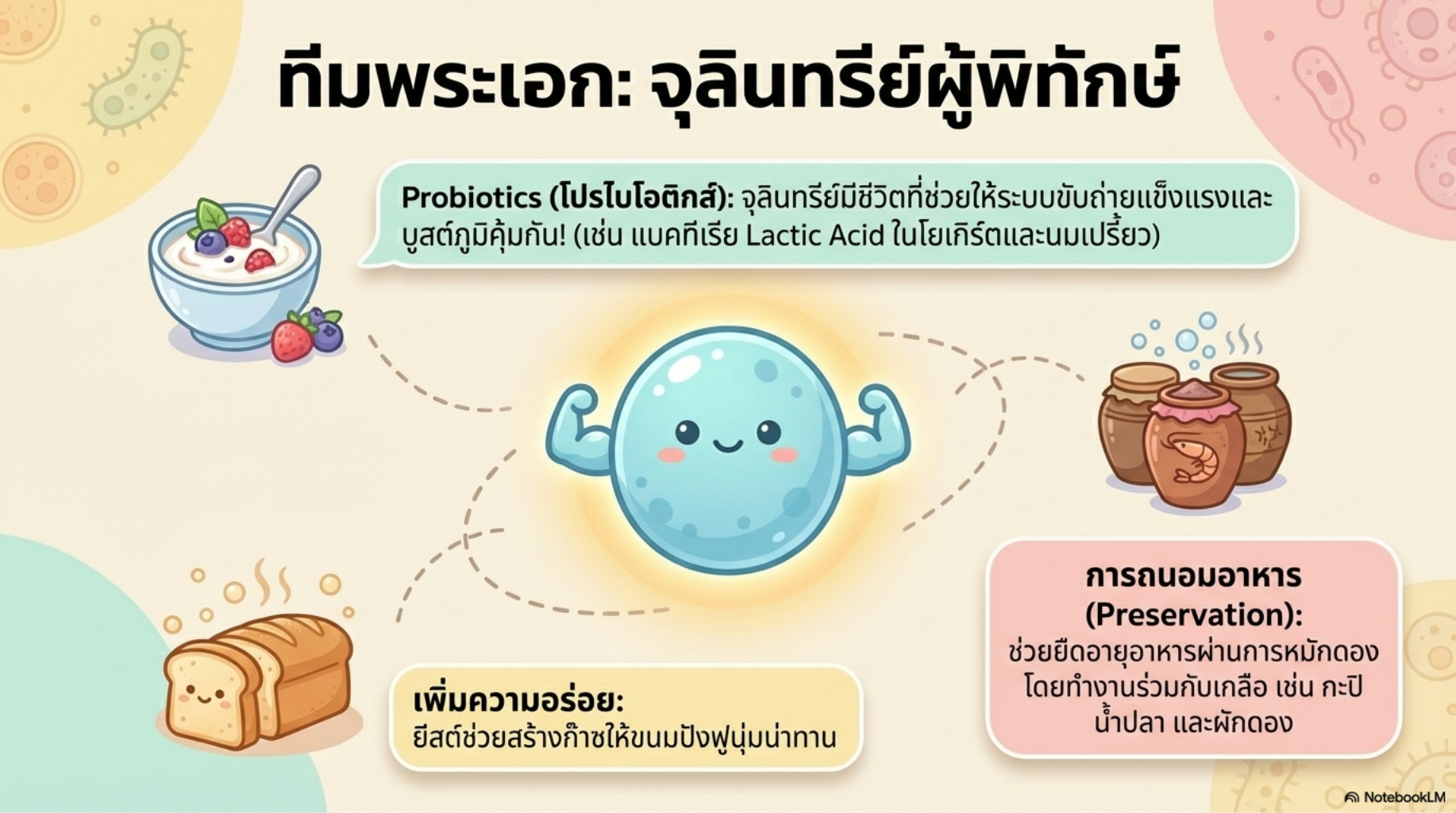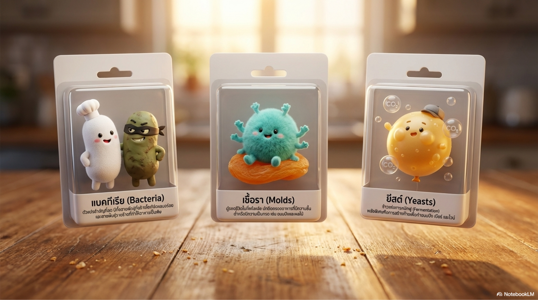 Storybook Aesthetic: เป็นสไตล์ภาพประกอบนิทานเด็กที่เน้นความอ่อนโยน การเล่าเรื่องผ่านตัวละครที่มีจินตนาการ (เช่น ยีสต์ถือถุงแป้ง) ทำให้ดูเข้าถึงง่ายและดูมีชีวิตจิตใจ