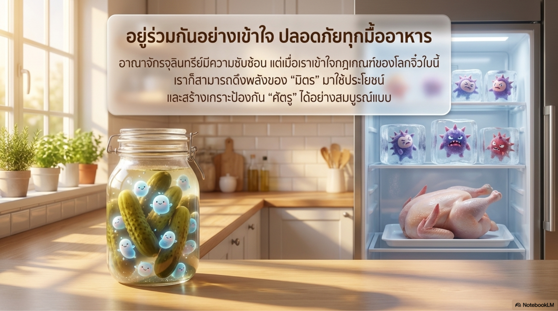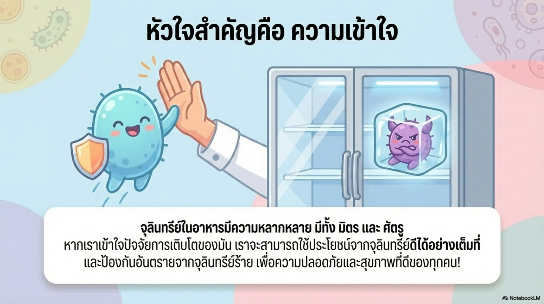 Subsurface Scattering (SSS): เทคนิคที่ทำให้ตัวละครดู “เรืองแสง” หรือ “ใส” เล็กน้อย (Glowing/Clean) ช่วยให้จุลินทรีย์ฝ่ายดีดูสะอาดและมีพลัง